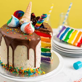 Bring colour fun and fantasy to your next party with a rainbow birthday cake. Caramel Drip Cake - 17976kj. Make every celebration count with a delicious cake that people cant cone-trol themselves around.